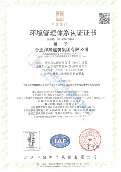 环境管理体系认证证书