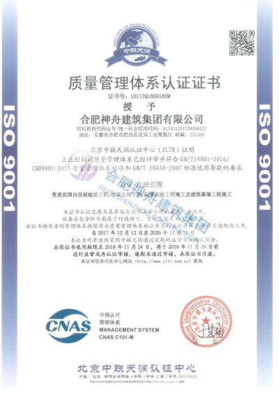 质量管理体系认证证书