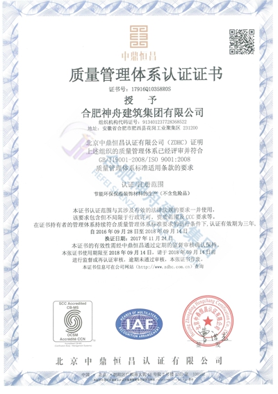 质量管理体系认证证书