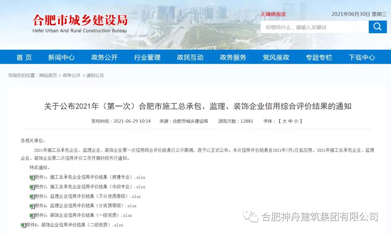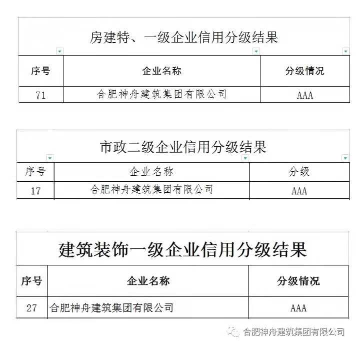 在全面构建诚信体系建设,不断加强建筑行业信用管理,着力“打造一处失信、处处受限”的信用氛围,为诚实守信、合法经营的企业提供良好的市场环境,我们的主管部门合肥市城乡建设局继2020年的信用评价工作之后,又组织开展了2021年度合肥市施工总承包及专业承包企业信用评价工作,并于近日公告了评审结果,这一举措将再一次推动了我市社会信用体系建设工作迈向更高的台阶!