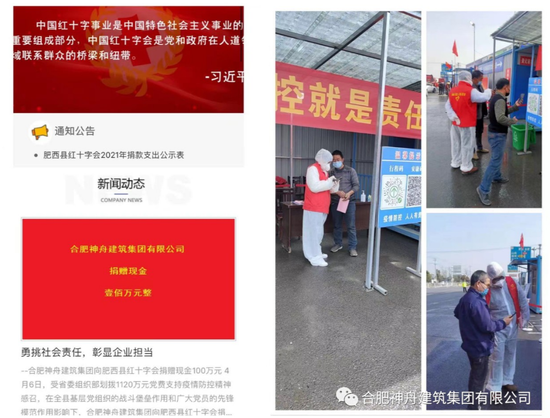 在清明节假期期间参与志愿服务的同时,也让我们深刻意识到当前疫情远比想象中还要严峻。因此集团党支部及董事会于4月05日组织召开紧急会议,确定了两项重要内容:一是在会上明确提出党员职工要积极踊跃参与到志愿服务工作中去,大力宣传疫情防控知识,倡导人员不聚集不流动,以身作则,增强线上交流;二是以经济支援来体现企业爱心,会上决定向肥西县红十字会捐款100万元,定向用于全县疫情防控工作。在疫情面前,我们愿意冲锋在前,担当作为,坚决参与打好这场战“疫”的攻坚战。