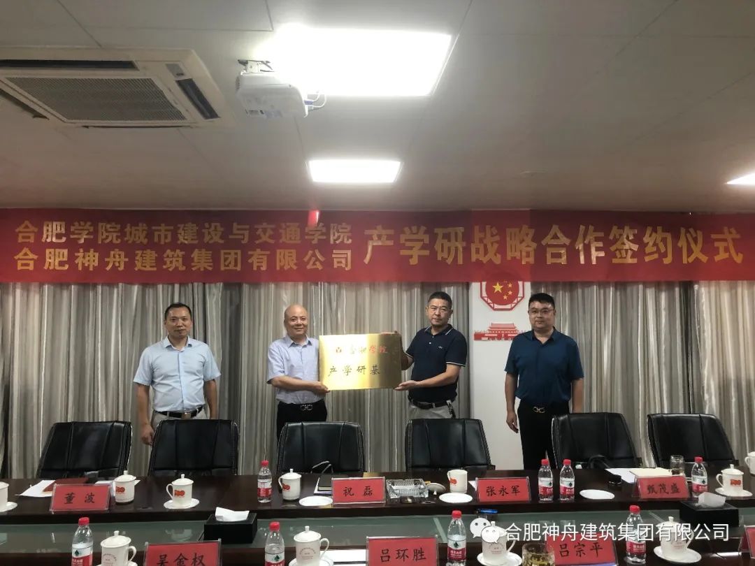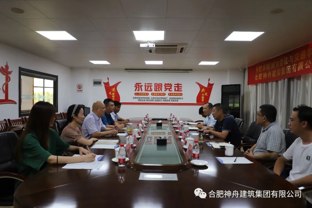 2022年8月22日下午,合肥学院城市建设与交通学院与合肥神舟建筑集团有限公司产学研战略合作签约及基地授牌仪式在神舟集团三楼会议室举行。合肥学院城市建设与交通学院党委副书记张永军、副院长祝磊、石军兵(博士)、学工办副主任董波与工口