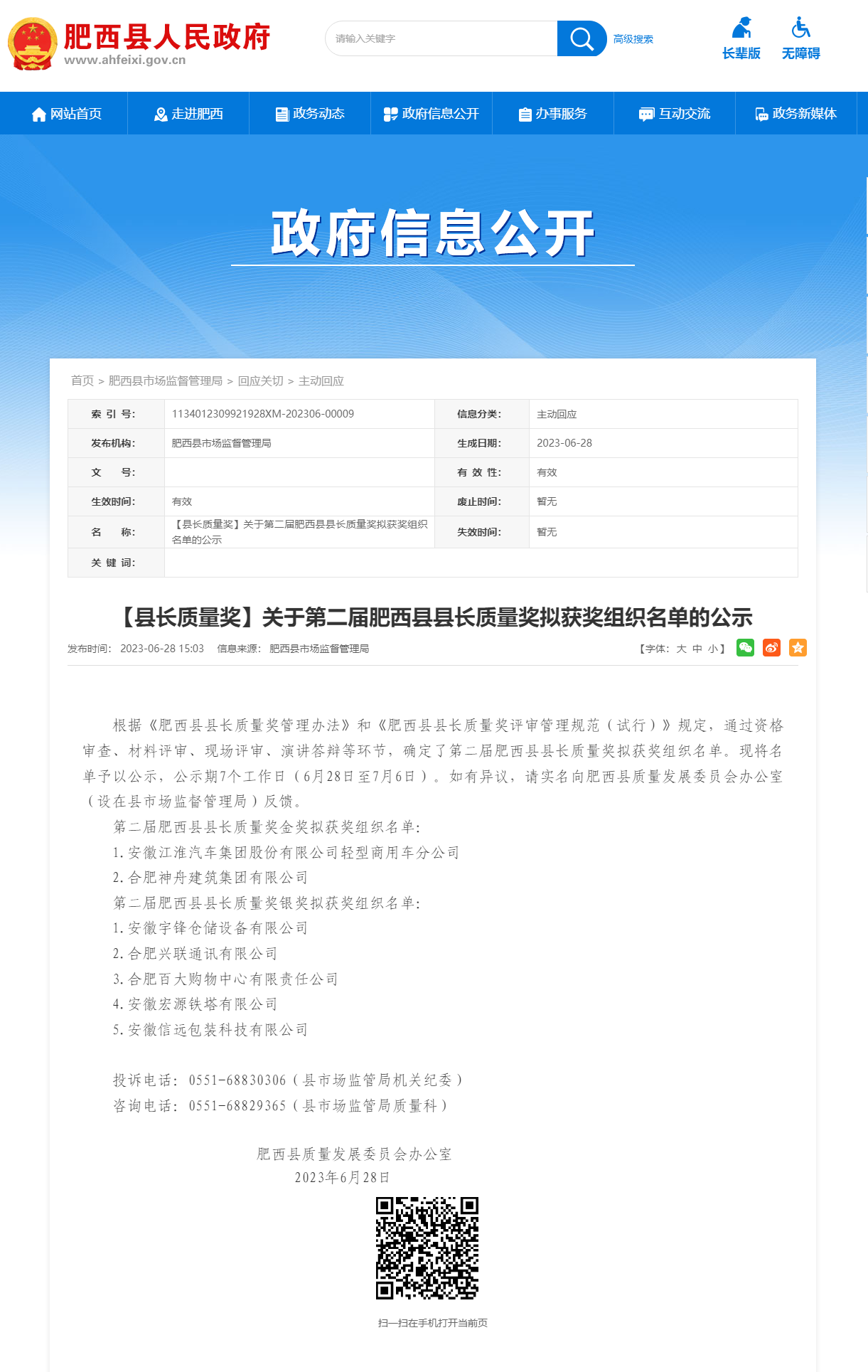 近日,工口 凭借卓越的质量管理模式,荣获肥西县县长质量奖金奖。